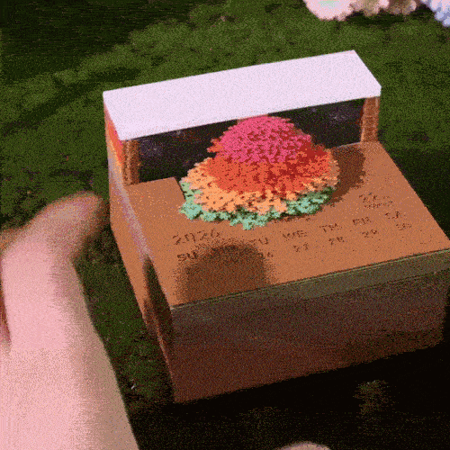 Answer 1: This calendar is not just a time-tracking tool; it transforms into a beautiful 3D model throughout the year, enhancing your workspace with artistic flair. Each month, you reveal a new component of a whimsical treehouse scene, combining creativity with functionality.